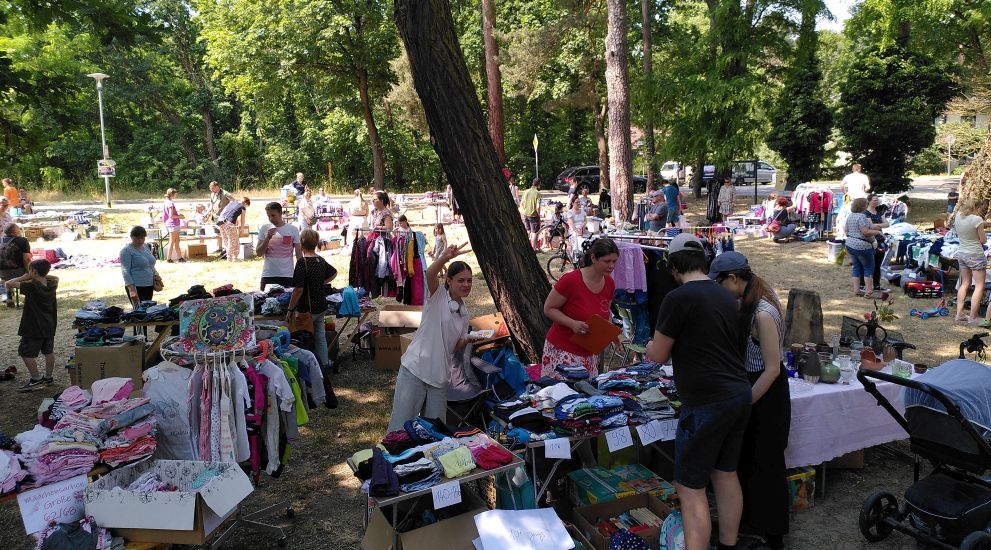 Mehr als zwanzig Flohmarktbegeisterte trafen sich am 10. Juni auf Einladung des Kikive auf dem Wilhelm-Mühler-Platz und bauten ihre bunten