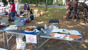 Am 12. September gab es vormittags bei herrlichstem Spätsommerwetter ein buntes Treiben auf dem Wilhelm-Mühler-Platz in Wilhelmshorst. An ca. 20 Ständen konnten die zahlreichen Besucher Kinderkleidung, Spielzeug, Fahrräder und Roller, DVDs und vieles Mehr aus zweiter Hand erstehen.