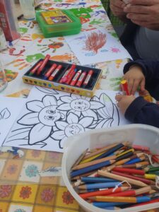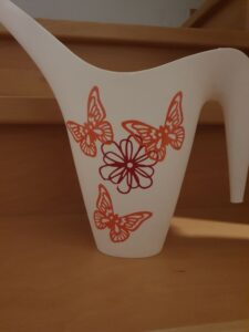 Da für eine gute Ernte auch die Bewässerung wichtig ist, durfte wer wollte eine Gießkanne mit selbst gestanzten Aufklebern verzieren.