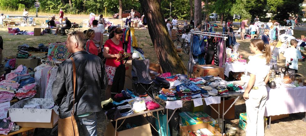 Mehr als zwanzig Flohmarktbegeisterte trafen sich am 10. Juni auf Einladung des Kikive auf dem Wilhelm-Mühler-Platz und bauten ihre bunten Stände auf: von Büchern über Kleidung, Spielzeug und Fahrzeuge bis zu Geschirr wollten viele Schätzchen und Schnäppchen ihren Besitzer wechseln.