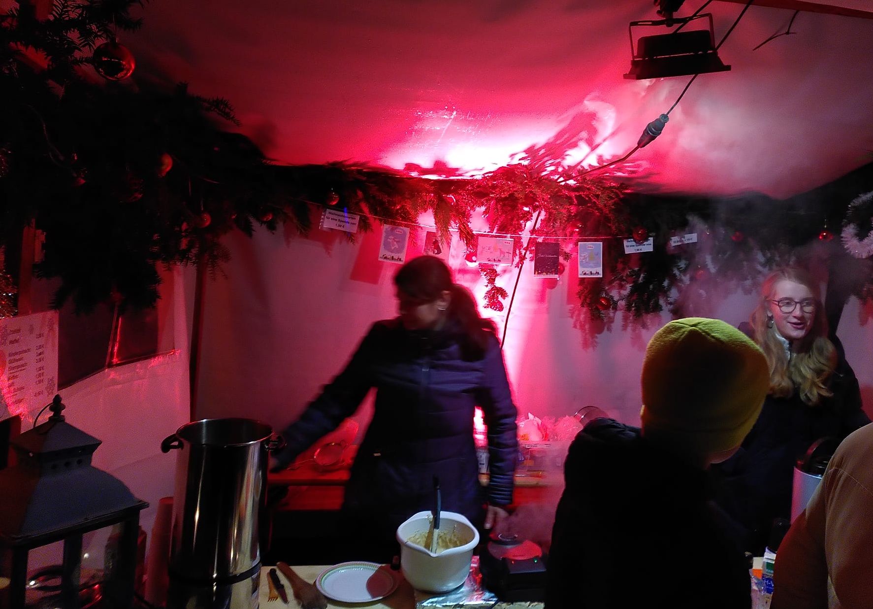 Bei allerschönstem Spätherbst- fast schon Winterwetter war der gesamte Weihnachtsmarkt von vielen Gästen gut besucht, die sich bei uns am Stand über eine Waffel, unseren klassischen Apfelpunsch mit und ohne Schuss oder einen Glühwein freuen konnten und unsere Kasse für die nächsten Projekte klingeln ließen.